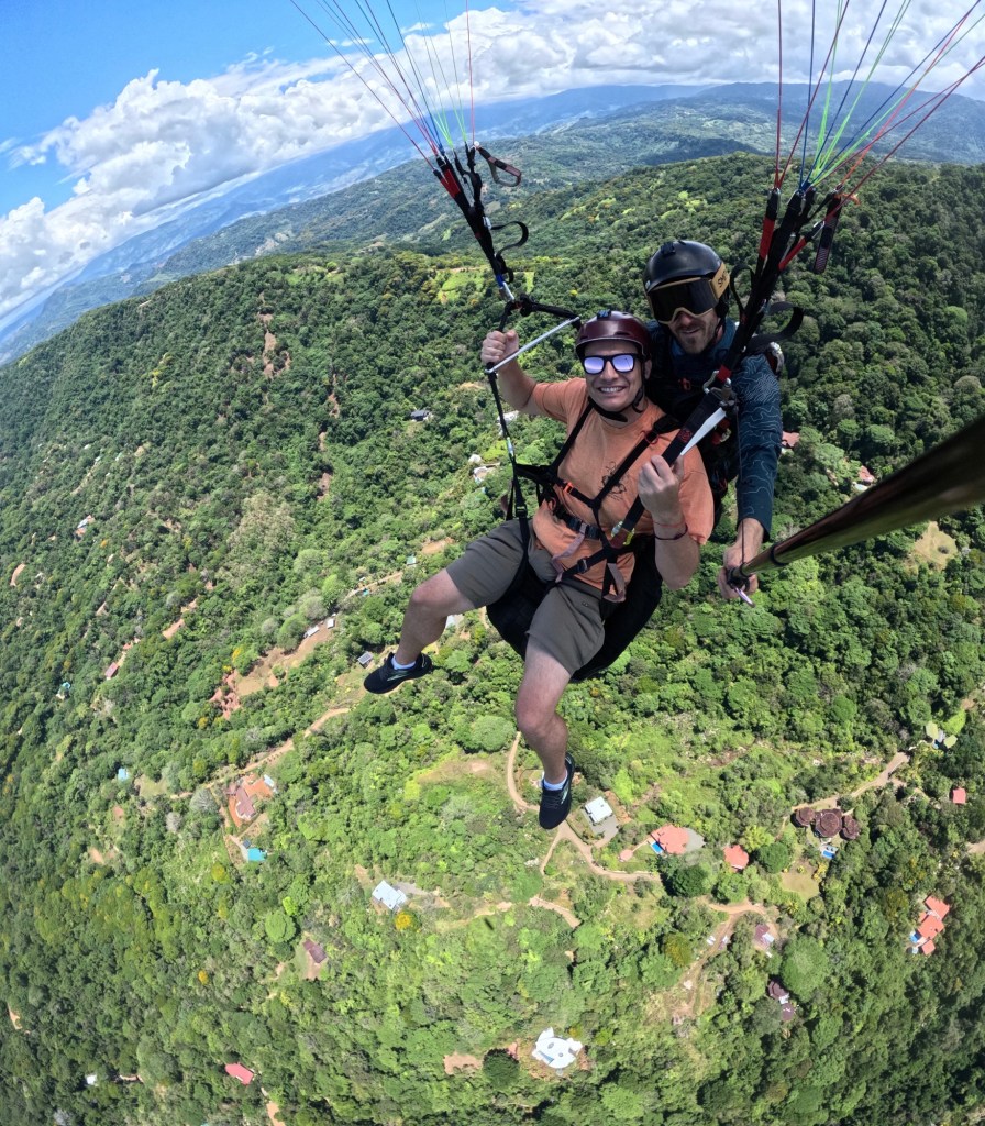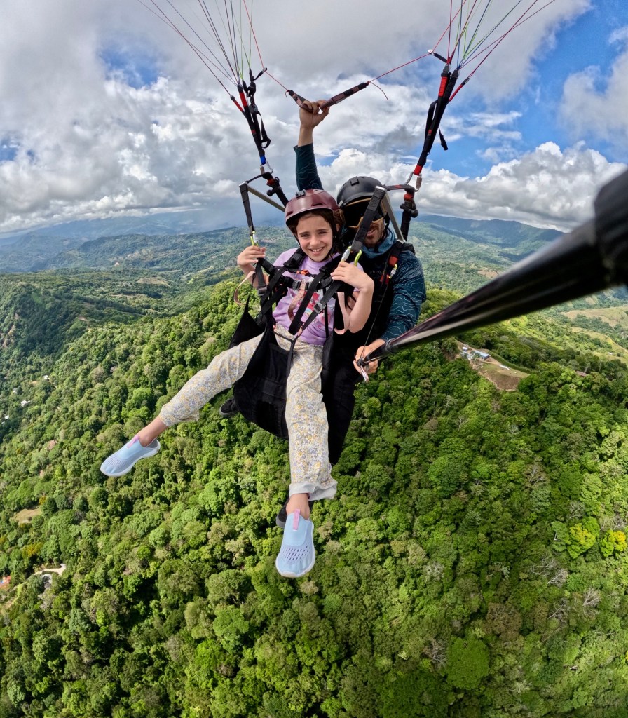 Lidia had jumped before me and was already floating along with her pilot, Fernando, spiraling up into thermals and gliding over the jungle. We were able to look down and find our house, knowing Steph and the kids were down there waving up at us. Sadly, we couldn’t hear them screaming “LIDIAAAAAA!!!”