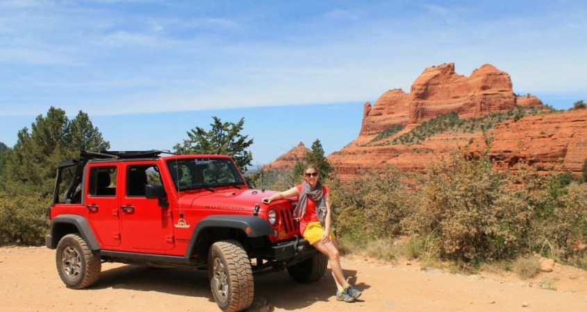 Amir and I both got into town a day early, so we decided to take a 1/2 day trip to Sedona and rent a JEEP to explore the trails. Amir found a great place on TripAdvisor.com called Barlow’s. We drove 2 hours north from Phoenix to Sedona, and even without a reservation, they were able to rent us “Jennie,” an awesome red, 4-door Jeep Wrangler Rubicon with very “knobbly tires” as Amir says.