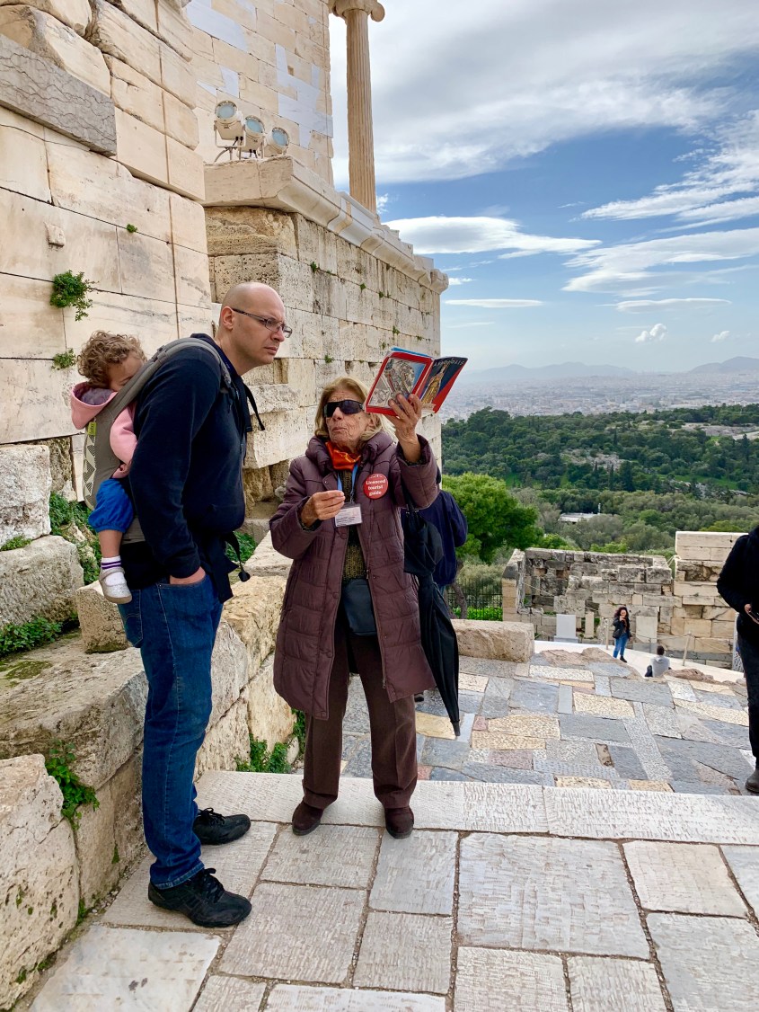 We reached the top of the hill and the Acropolis. You can purchase a 5 site pass for $30 euro which lasts 5 days and gives you access to the major historic sites. We also opted to hire a guide to walk with us and narrate the history.