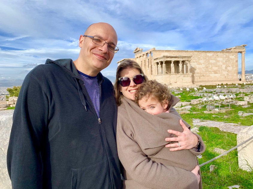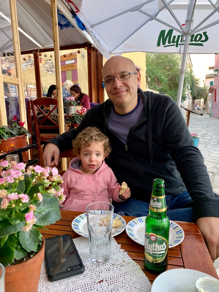 We flew Dulles–>Heathrow–>Athens with an itinerary we thought perfect for our almost 2 year old. An overnight transatlantic flight on British Airways followed by a shorter flight arriving early afternoon into Athens.