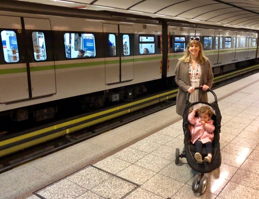 After breakfast, we walked to the metro station and rode it three stops on the red line to Acropolis Museum. The metro was easy to navigate, even with a stroller.