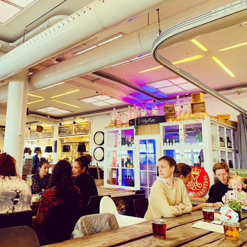 Amir has scouted Google Maps for a casual place to stop and grab dinner. Wherever we go, we are always on the hunt for the best casual seafood restaurant with tons of atmosphere. Near home, it’s Merrior in Topping, VA. In Copenhagen it’s Toldbogen. Complete with outdoor space by the water and an inviting interior that mixes salt water fishing with industrial and techno, there’s tons of visual interest. Amir ordered a meat sampler and I the fish n chips. Both came served on a bed of perfectly salted string French fries and with freshly plucked raw veggies draping over top. Simple preparation of delicious ingredients allowed all the natural flavors to speak for themselves.