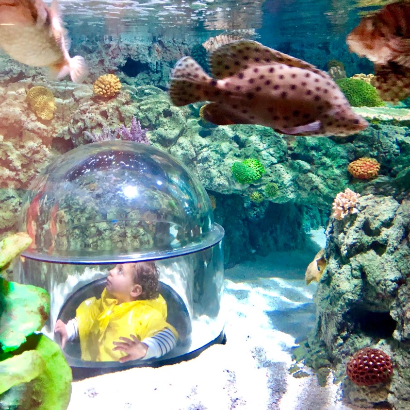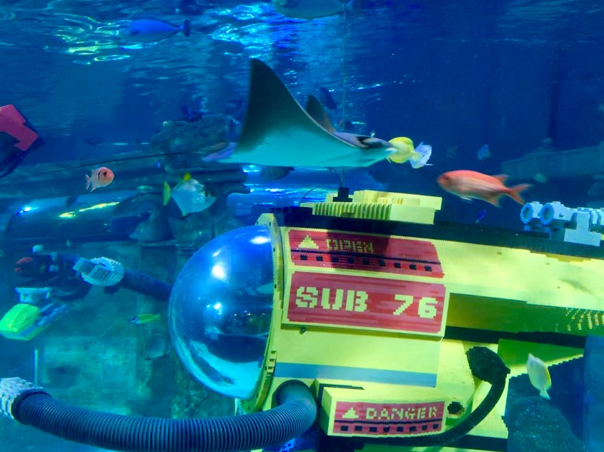 After the carousel, the rain had intensified, so we went in search of an indoor activity and landed at Atlantis, the aquarium. There’s a short film before entering the aquarium itself, but you are quickly greeted by sharks, clown fish, stingrays and various other colorful creatures.