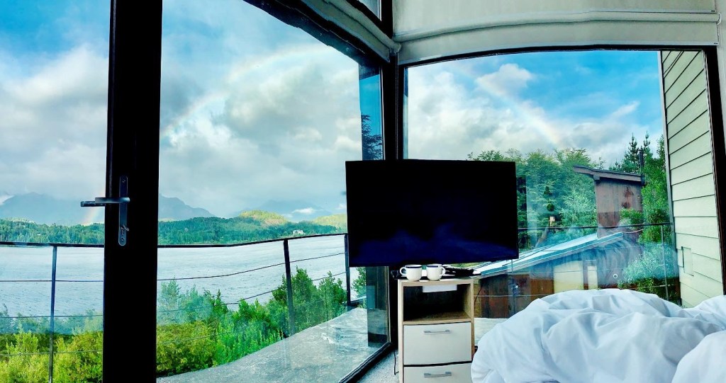 Yesterday I went to sleep feeling as if I were sleeping under the stars, and this morning I awoke to a welcoming rainbow just outside our window overlooking the lake.