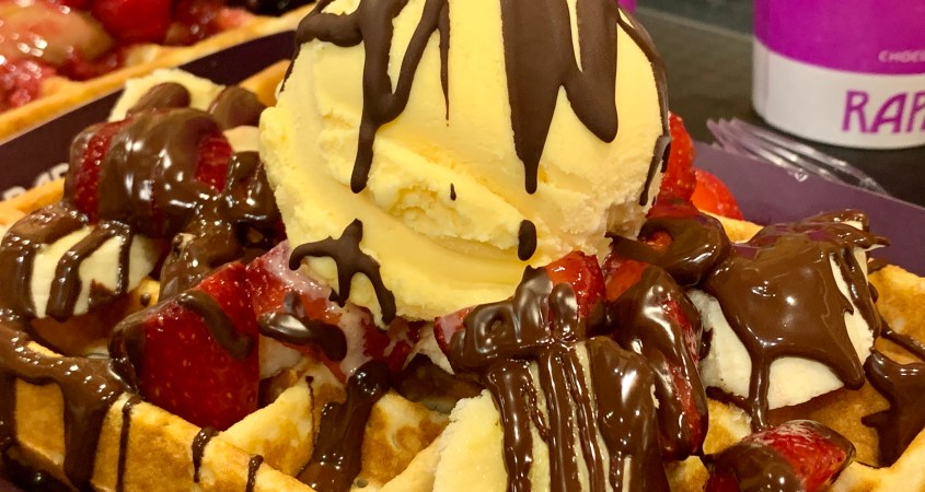 Not only can you purchase chocolate pieces like bonbons, Rapanui also offers sit down service featuring waffles, crepes, gelato and coffee.
