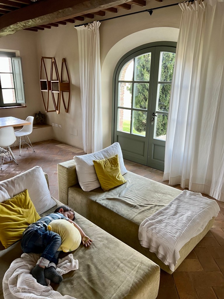 Our AirBnB is about two hours outside of Rome, in the Lazio region. A different listing initially caught my eye, but then I noticed the other had no bathtub (dealbreaker when traveling with small ones). Podere Palazzo offered a huge bathtub and was slightly cheaper – an easy decision.