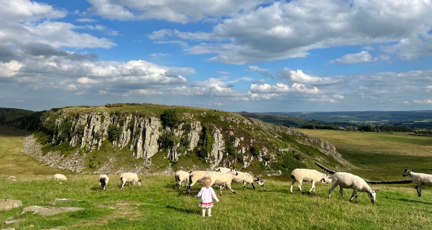 Hadrian’s Wall spans down the hill from the sheep and up a steep incline to another hill across a ravine. The wall spans a total of 73 miles across the whole of Northern England. We were just seeing a small portion of it. Visiting Hadrian’s Wall has been a bucket list item for Amir since the day I met him. We tried to squeeze it in when we were last in England in 2014 but couldn’t make it happen.