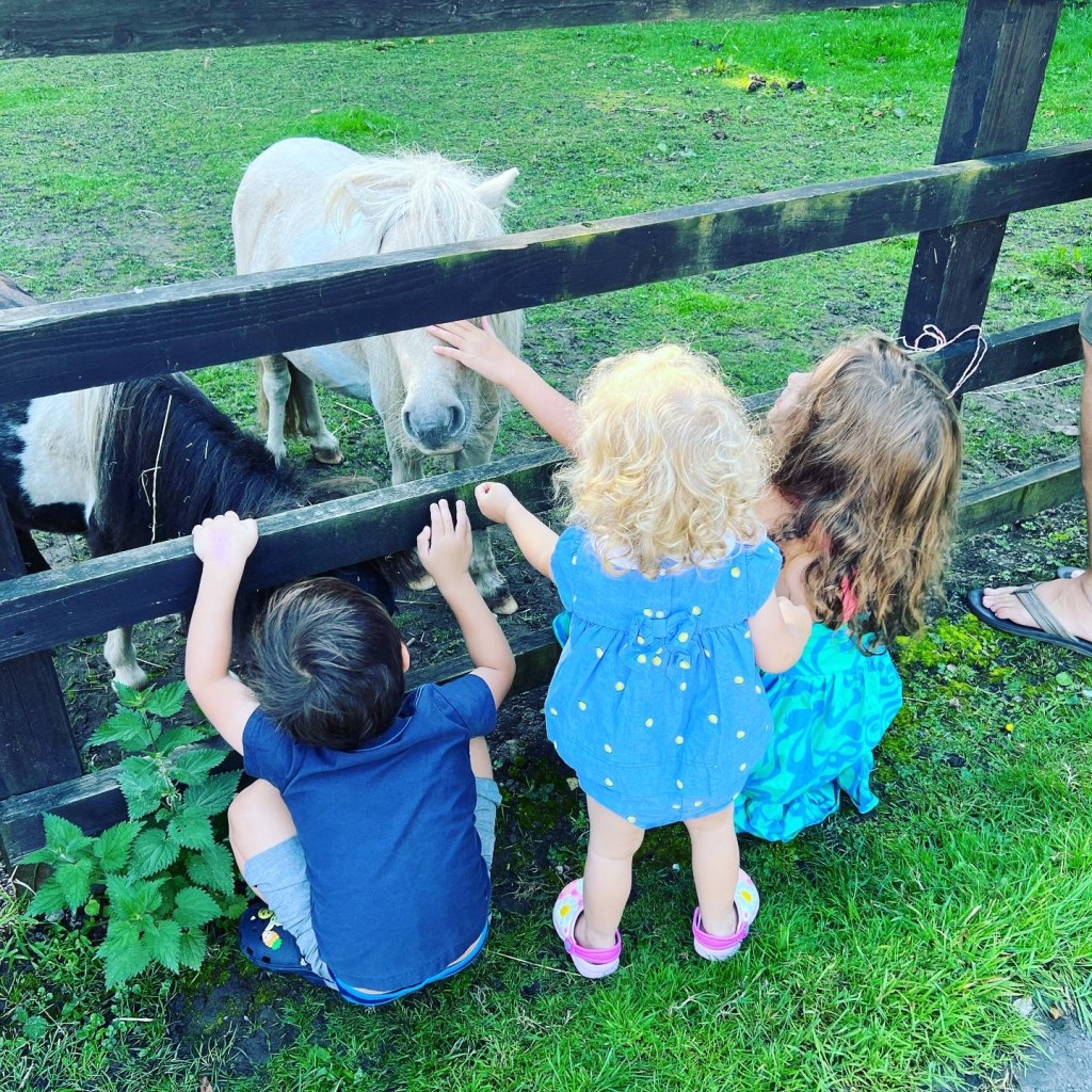 We had an hour before the local cafe was set to open for breakfast, so we turned left instead of right and quickly found some new friends. Two small horses greeted us with neighs but were disappointed to find we had empty hands instead of apples. Across from the horse pen was a small farm with fresh eggs for sale using an honor box for payments.