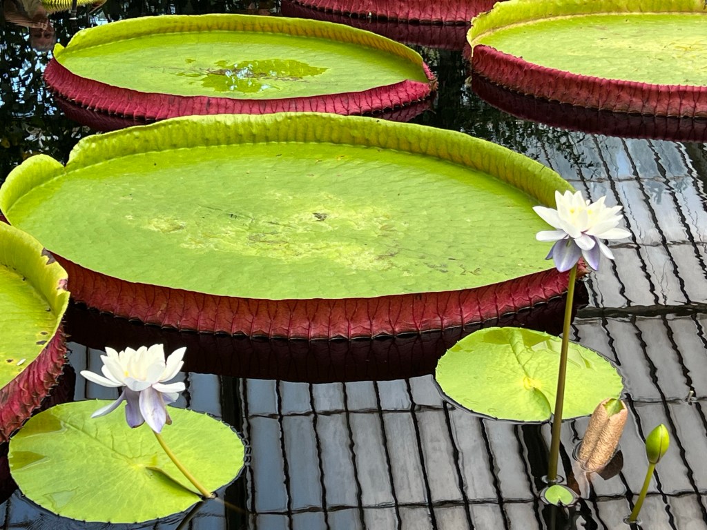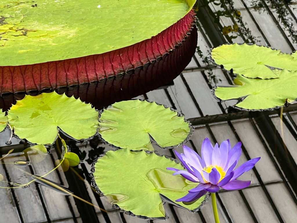 My favorite was the Lily Pad House which featured every type of water plant I’m familiar with plus giant lily pads. The different lily pad species each had unique blooms. There was one lily pad that had recently been removed due to decay and turned upside down on the sidewalk for visitors to appreciate the intricate structure.