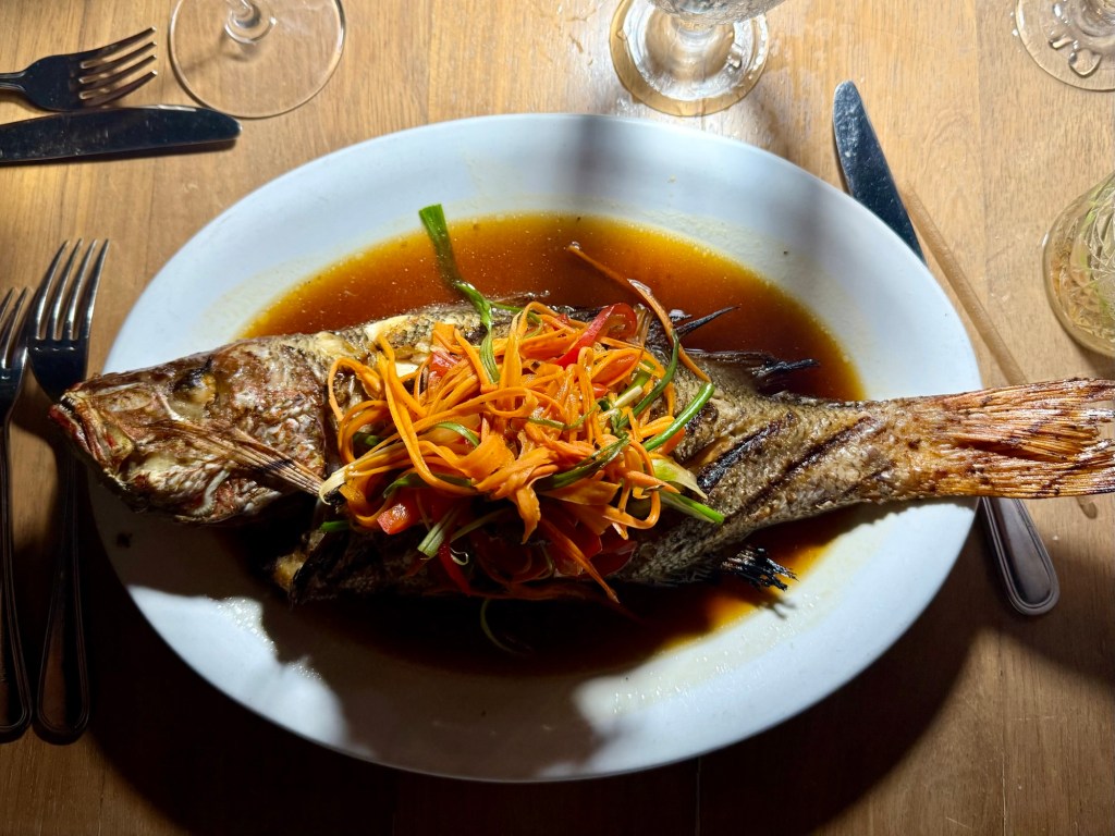 There were at least 7 types of fish, including Everything Seasoning encrusted salmon, grilled whole red snapper with spicy hoisin, and seasame rolled wahoo over sticky rice and seaweed salad. Everyone loved what they ordered.