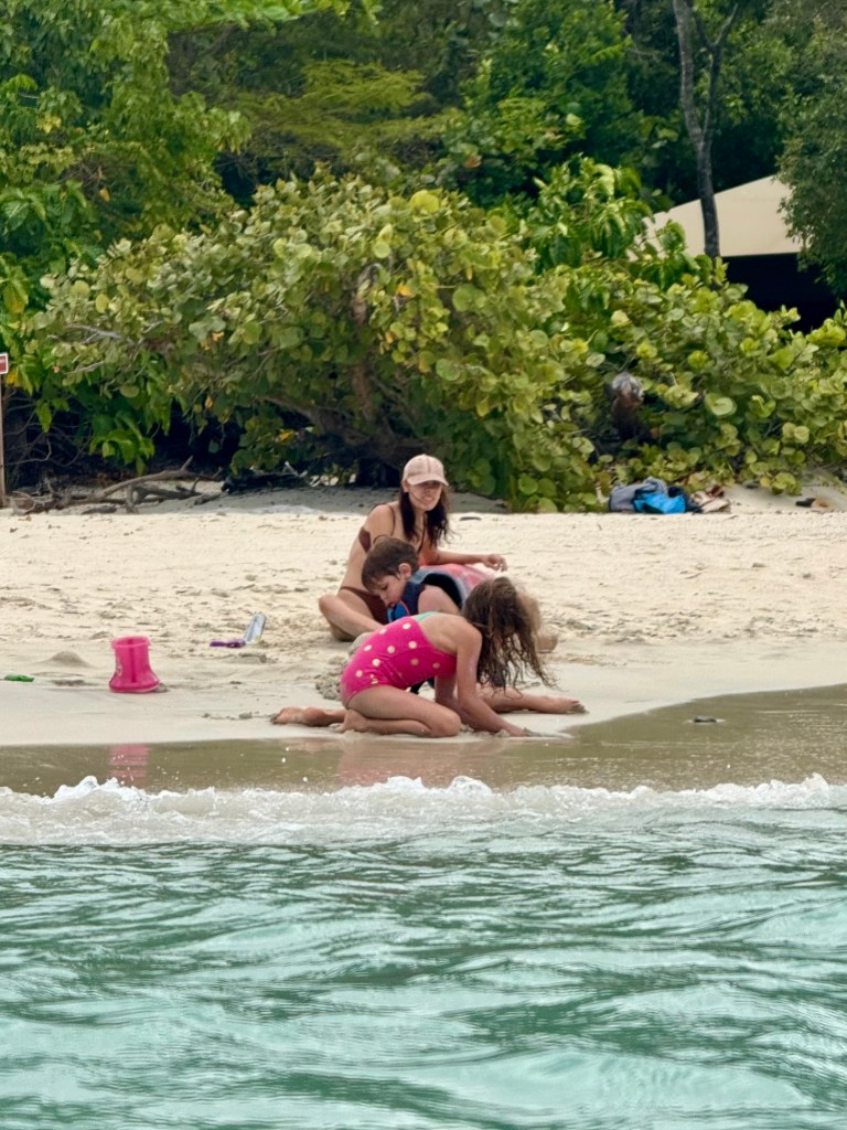 The beach today was extremely windy, so we snagged a spot shaded from the wind and sand by mangrove trees. This was a good strategic move on our part, as I’d later watch other families relocate 2 and 3 times for better shelter.