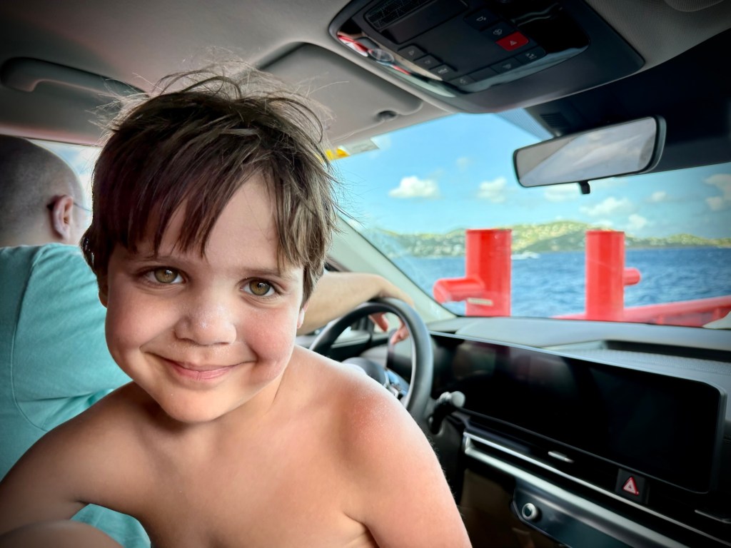 Dee and Patrick were also able to give us the scoop on the ferry over to St. John. We planned to leave the house by 9:30am to catch the 10:30 ferry, the Big Red Barge. Somehow we were early in leaving the house (I know right??), and it turns out we’d need that time. The ferry filled fast and left port by 10:20am. If we’d been on our intended schedule, we’d have missed it for sure.