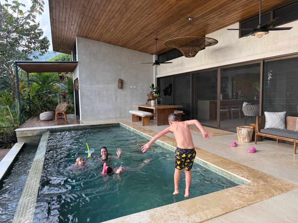 We arrived at our AirBnB just an hour later than anticipated. Our host unlocked the gate, introducing us to our new home for the week. We (and by we I really mean Amir) spent a few weeks comparing options in this region of Costa Rica before settling on this home with stunning views, an infinity pool, and rainforest gardens complete with monkeys playing in the morning.