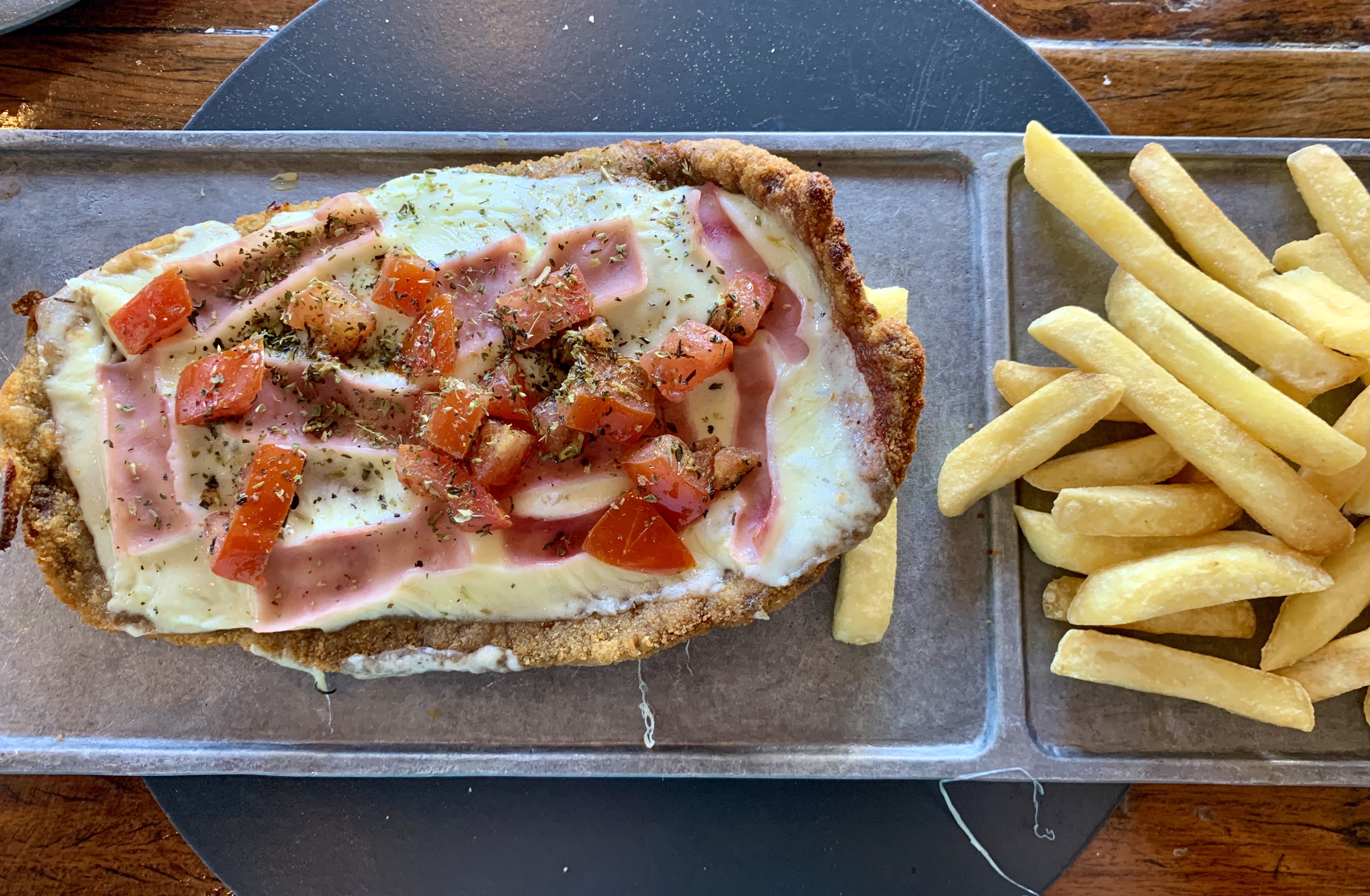 Milanesa is a traditional Argentinian dish which borrows from Italian roots. They take a variety of meats – veal, pork, chicken – pound it thin and bread it. This particular restaurant, La Casa de la Milanesa, treated the milanesa like a pizza crust, offering a selection of toppings with a side of fries. Delicious.